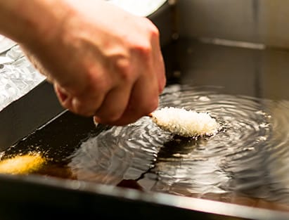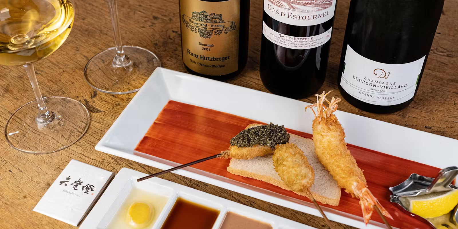 串揚げとワインで特別なひとときを 全国の生産者から直送される季節ごとの旬の食材を厳選し、 ひと手間もふた手間もかけ丁寧に串に刺しています。 創作したひと串ひと串で、初めての美味食感をお楽しみ下さい。
